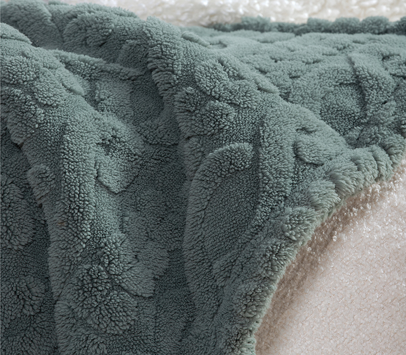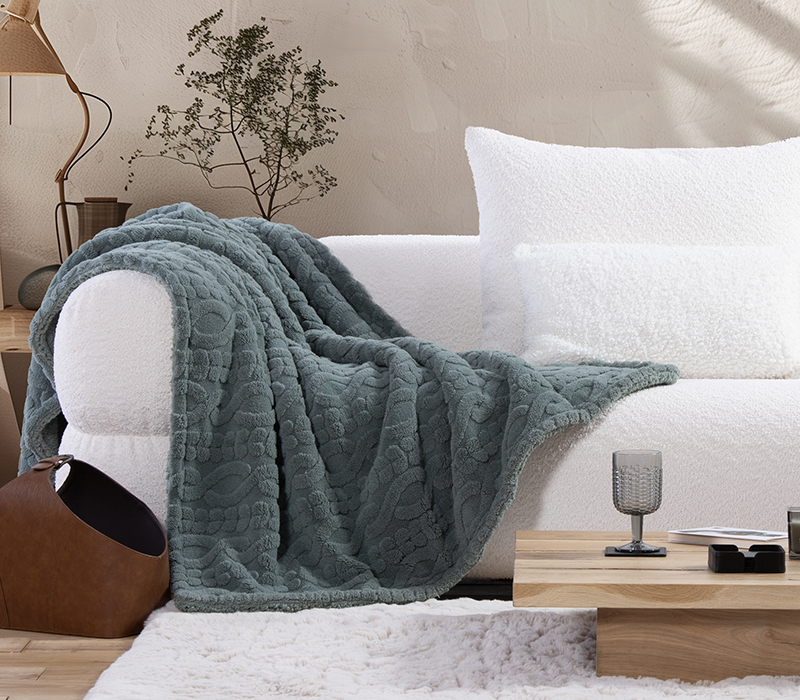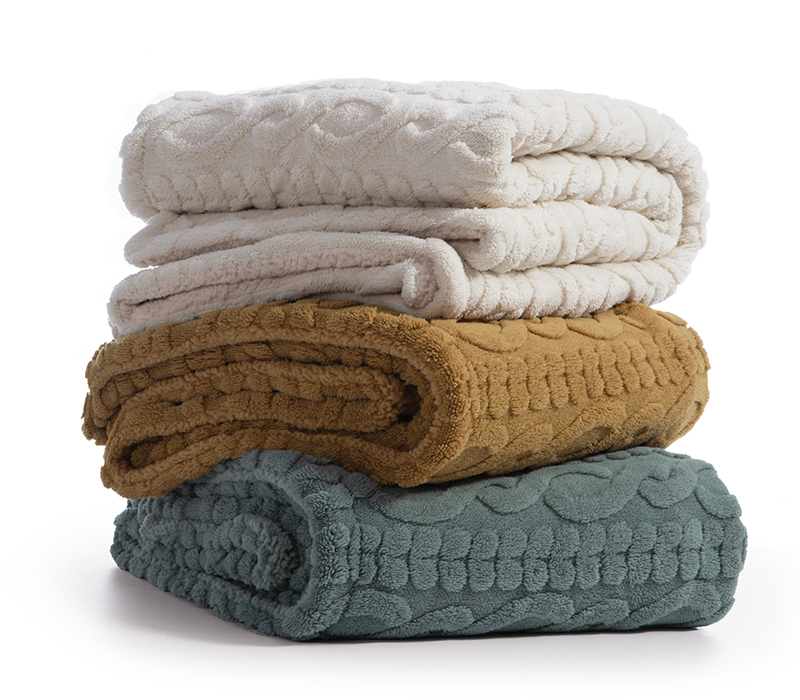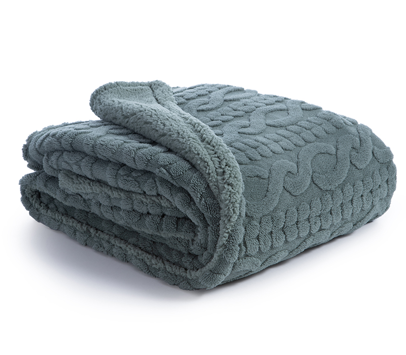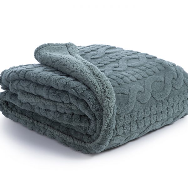 Κουβέρτα καναπέ, διάστασης 130x180cm από 100% ζακάρ πολυέστερ, 230 gr/m2 από την μπροστά πλευρά και από 100% Sherpa, 230 gr/m2 από την πίσω πλευρά.