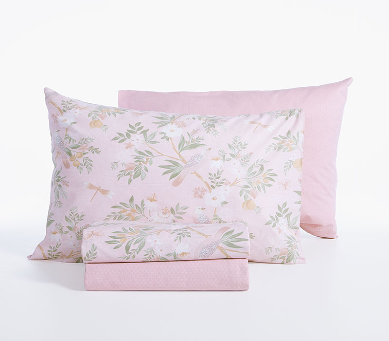 Το σετ περιλαμβάνει ένα πανωσέντονο και ένα κατωσέντονο διάστασης 170x270cm και μία μαξιλαροθήκη 52x72cm.